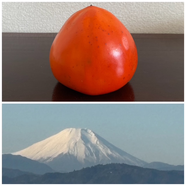 比べてみれば堂々たる勇姿。愛媛県八幡浜産「富士柿」は、サイズも日本一だ。手のひらにたっぷり乗る重量級の富士柿は、さっぱりした甘味にとろっとした食感。白身魚と合わせてカルパッチョにすると格別に美味。見方を変えれば世界は無限だ。