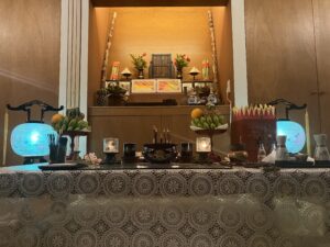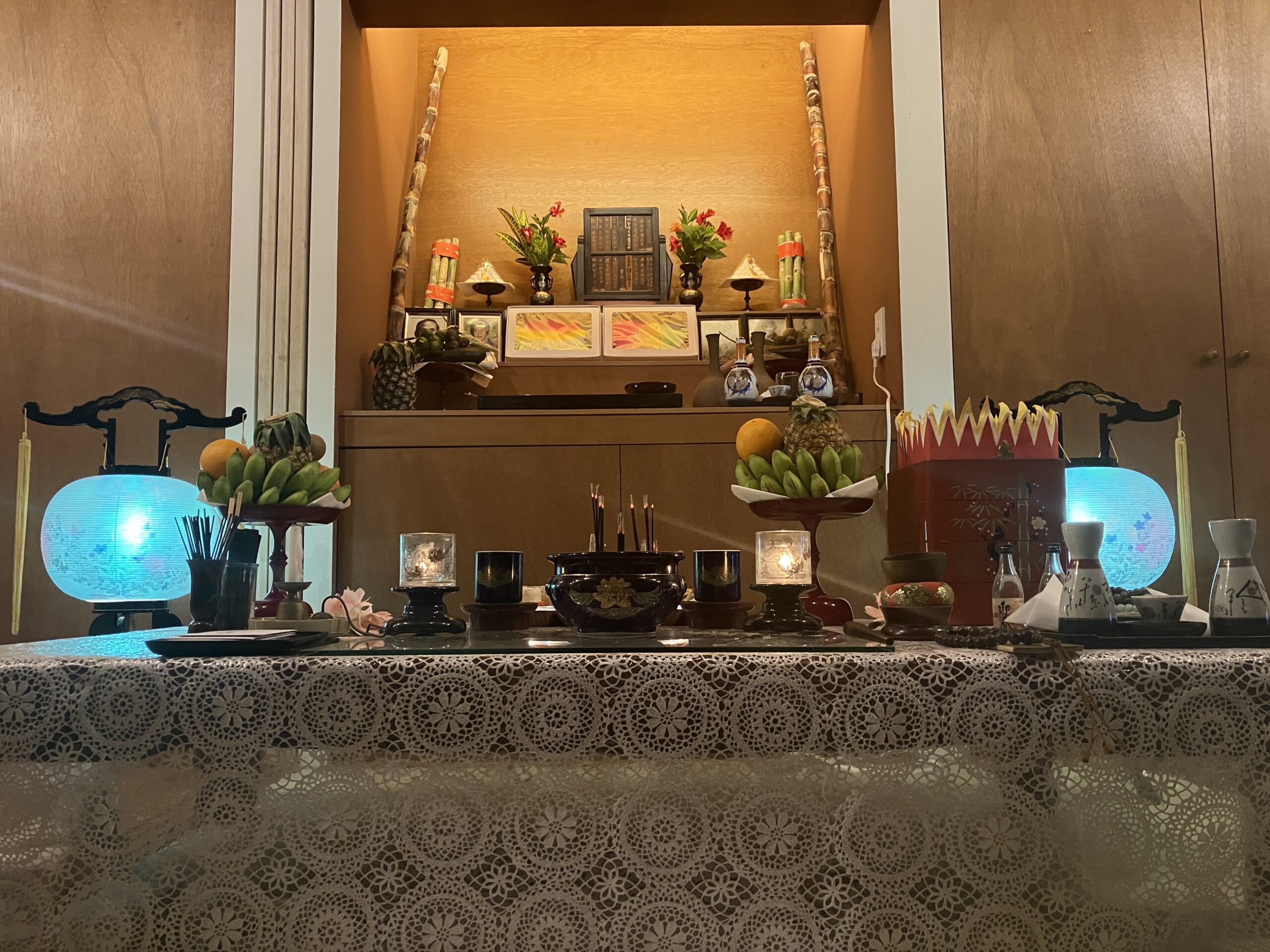 ▲仏壇の左右両端に対に供えられるサトウキビ