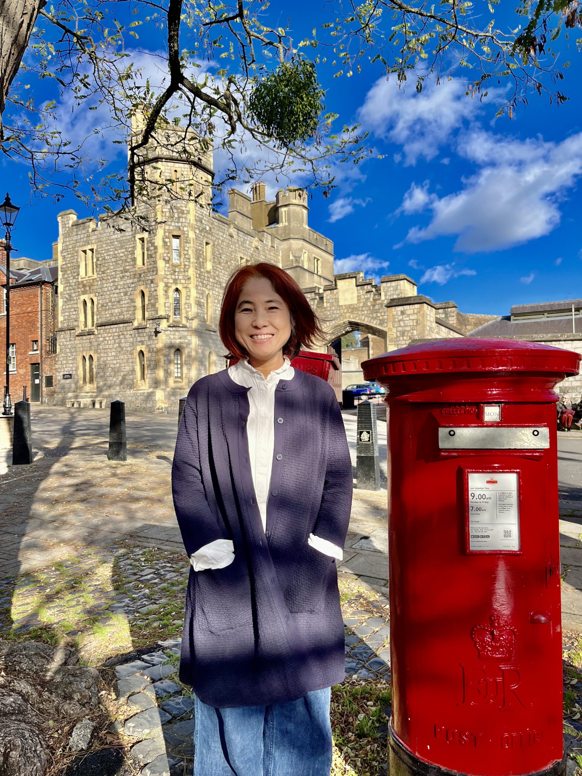 ▲イギリスの秋晴れ。ウィンザー城近くの赤ポスト。頭上には偶然のヤドリギ。