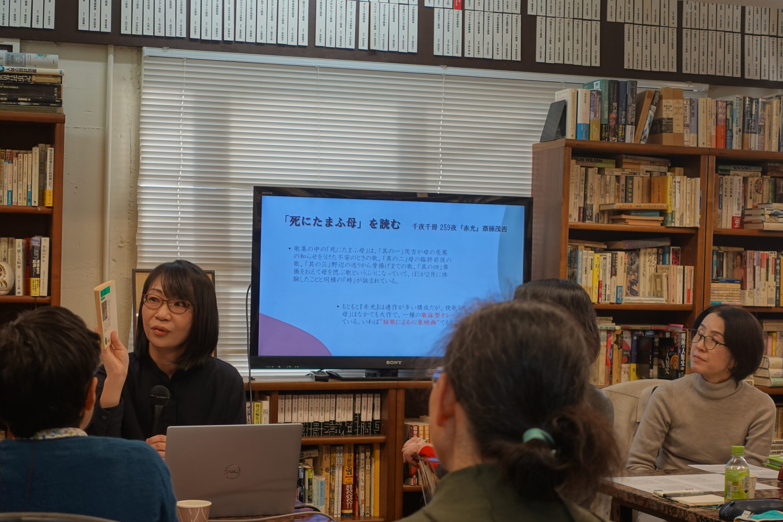シーンの連なりの事例として、短歌を専門にする天野は斎藤茂吉に肖って、著書『赤光』に収められた挽歌「死にたまふ母」全59首の内の11首を紹介します。この作品は校長・松岡正剛が短歌による心象映画と題していましたね。目のカメラを使った歌が続く中で一番伝えたい歌で心情を表象化し、読み手に緊張感を持たせていたのです。