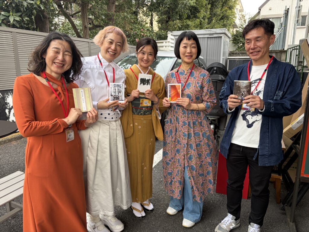 一番左の原田遥夏師範代(スクっと芍薬教室)は、「自分のプロフィールを掬った選書」と。互いに「その本読んでみたい!」と交わし合う。