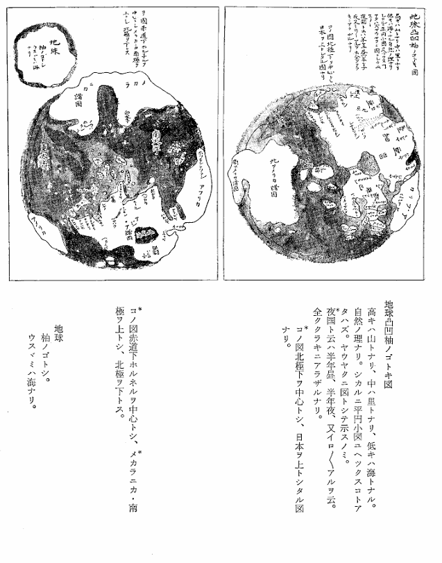 第2輪で読んだ「地理」の章にある「地球凸凹柚のごとき図」を紹介したい。