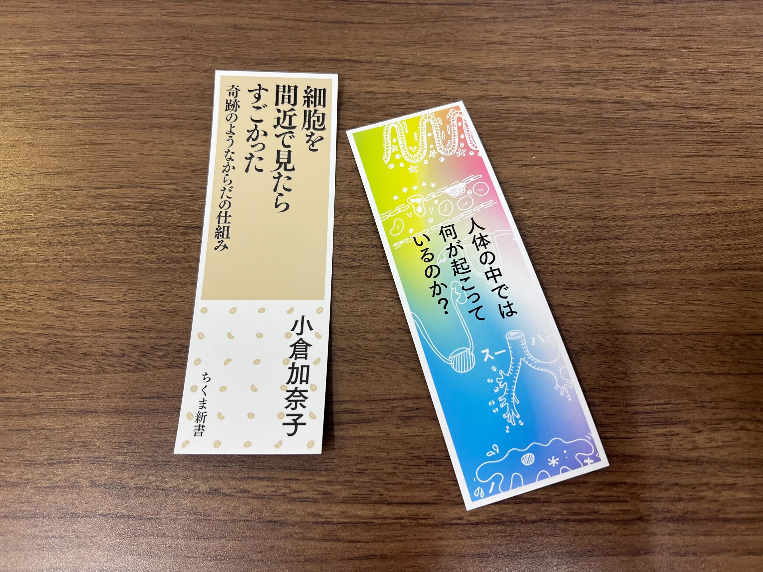 さて、2025年11月23日(日)・24日(月・祝)に開催される別典祭には、小倉さん率いるMEditLab for ISISがステージプログラムに参加したり、ブースを設けて物販したりする。そこで本書『細胞を間近で見たらすごかった』(特製しおり付)も販売される。しかも、税込1012円のところ、1000円ポッキリで販売するという。12円安い! この物価高、12円だってチリツモです。ぜひぜひ、本楼でお買い求めください。ブースでは小倉さんと一緒にゲームで遊べますよ。