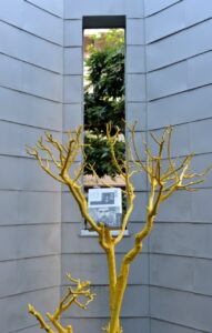 明るく快活な幸福の黄色。そんな樹のオブジェの中に本がある。方法文学、さて豊かさと面白さをどう読解するか楽しみである。