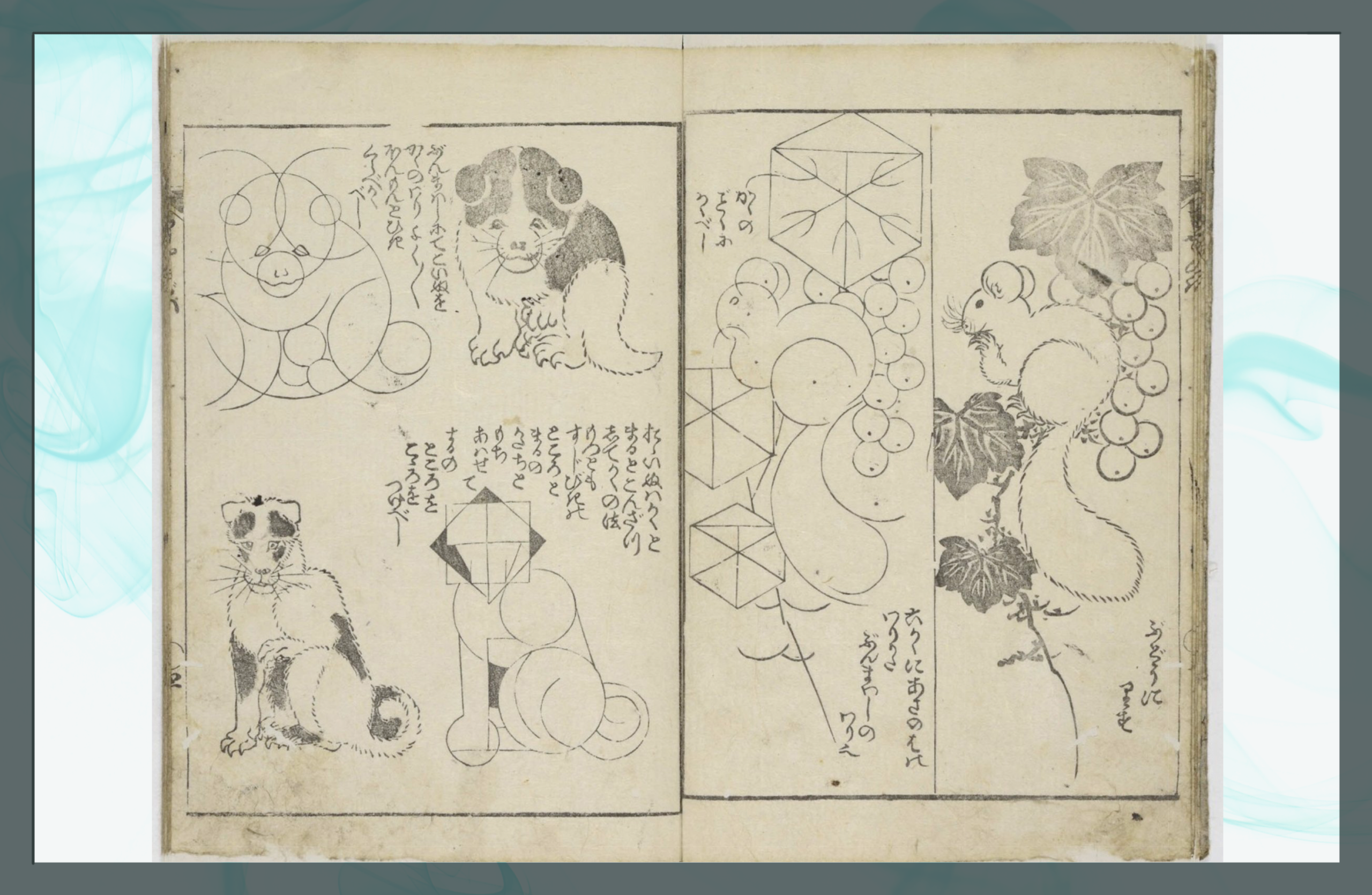 北斎『略画早指南』より。前書きには「コンパスと定規の二つがあれば、どんな細密な絵も描くことができる」と記されている。
