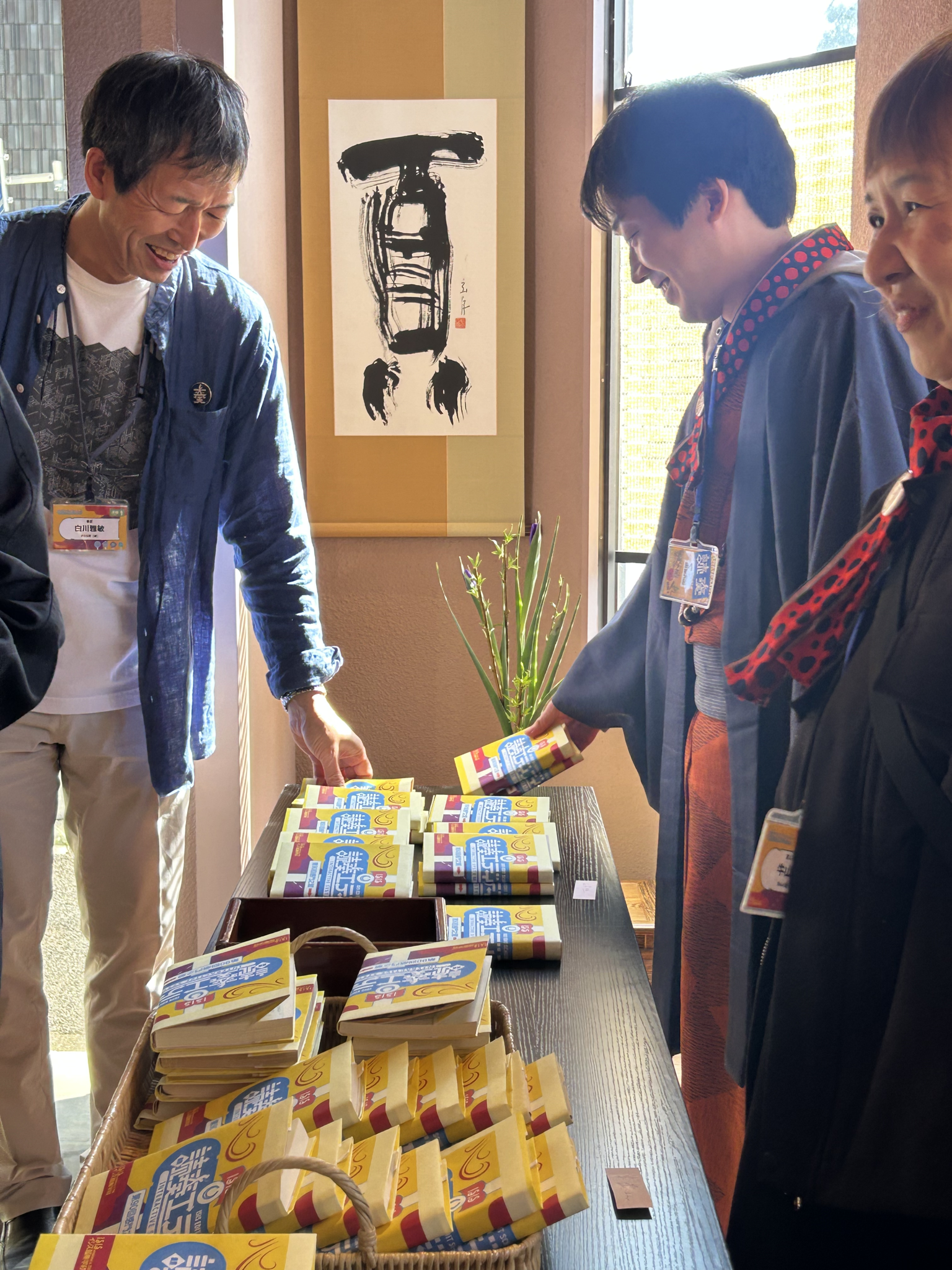 55[破]ハンシ八法教室の薗田祐介さんが受け取ったのは、白川静の『中国古代の文化』。送り主は、感門団として参加していた56[守]ハレルヤ電池教室の家村吏慧子師範代だ。薗田さんは中国語の勉強を始めたところで、まさに相思相愛の一冊。あまりのタイミングの良さに満面の笑みを見せた。