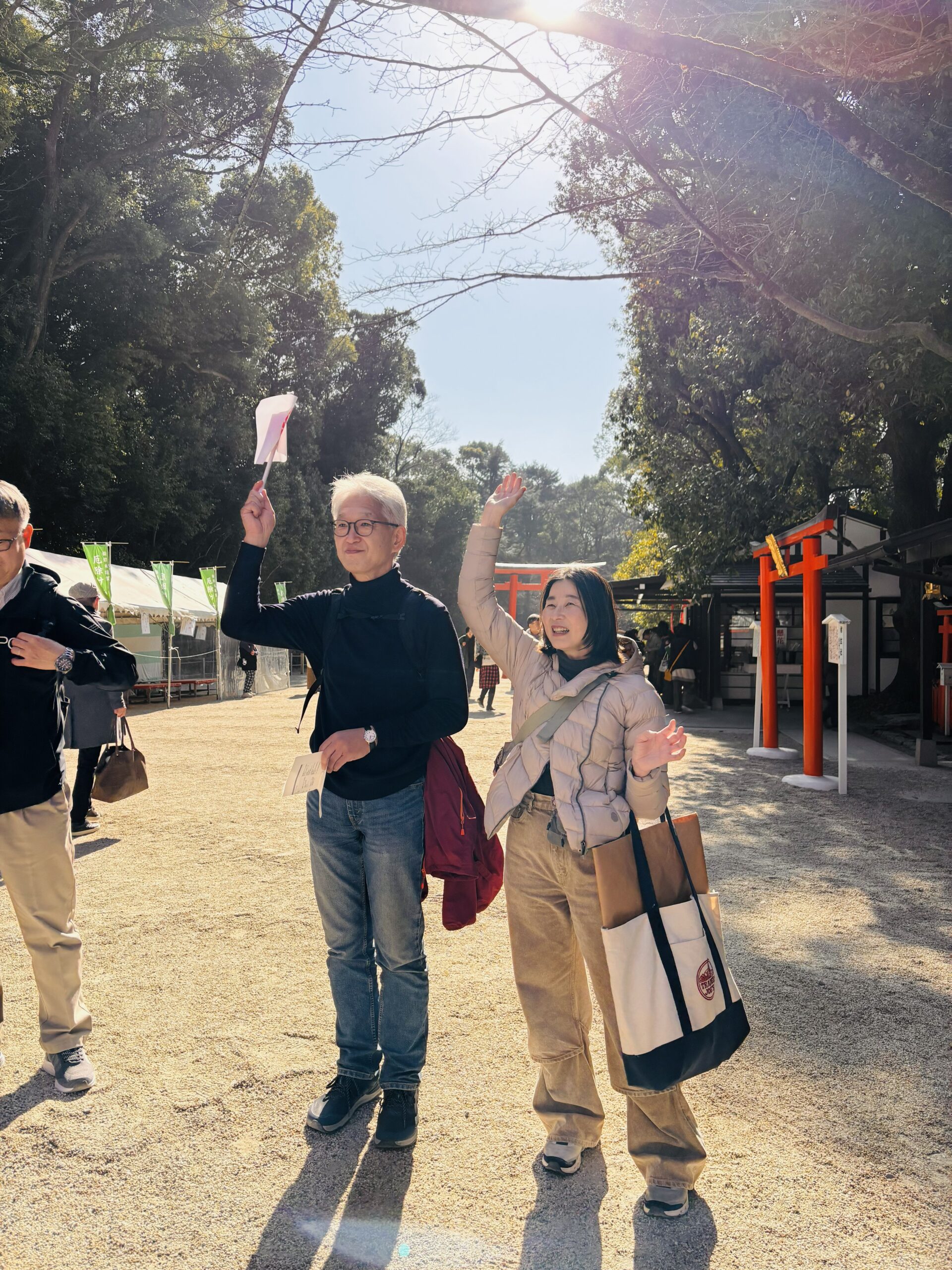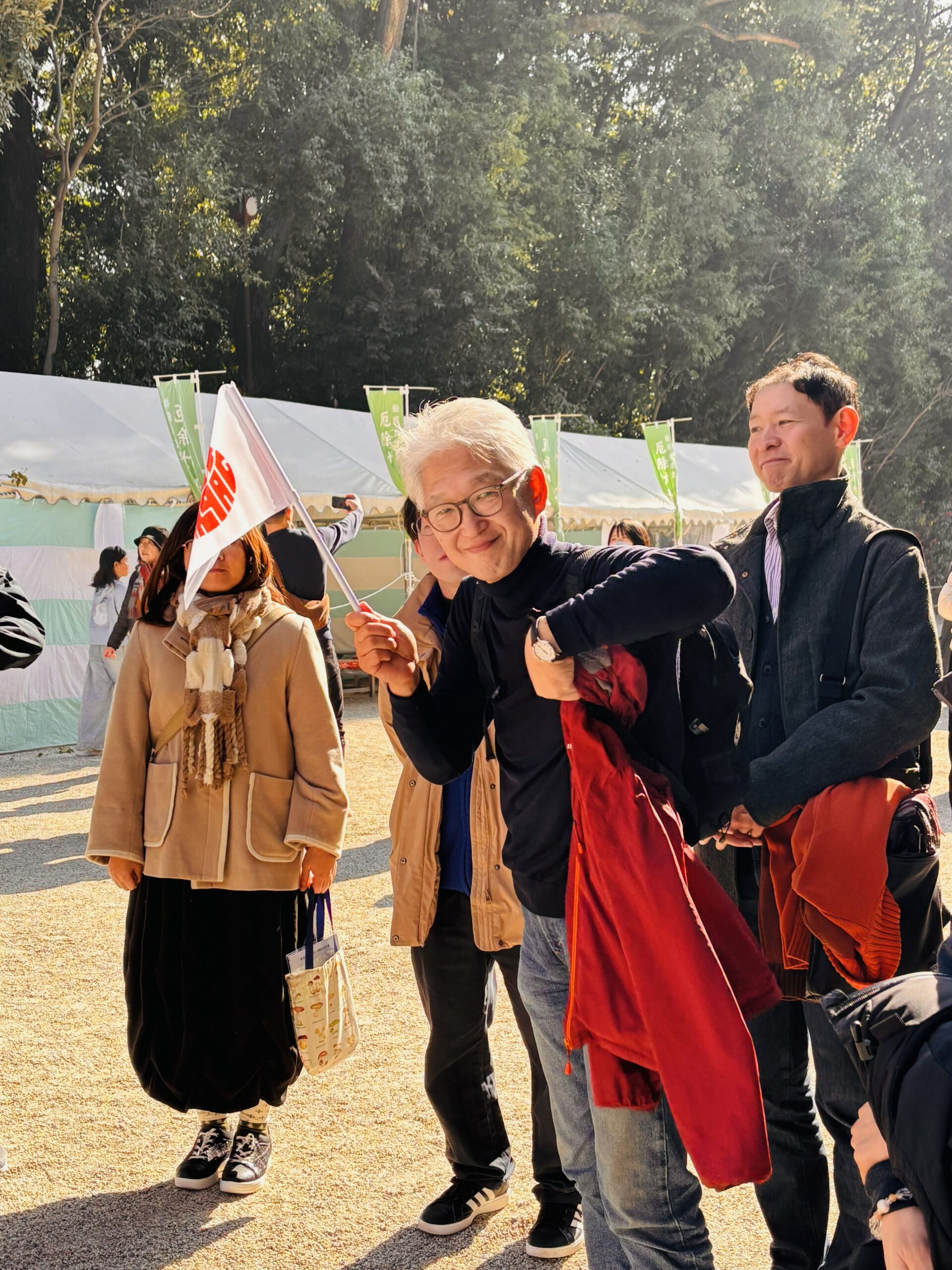 暖かな初春の下鴨神社。森を抜けてあらわれる赤い門で待ち合わせ。目印の赤い旗、赤を纏う関西汁講世話人を探す。まずはみんなでお参り。誰が師範で師範代?