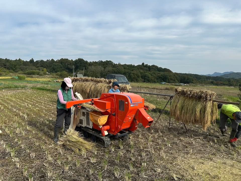 モーリス浅羽も自分の田んぼを手伝ってくれた人たちの田んぼの刈り入れを手伝う。