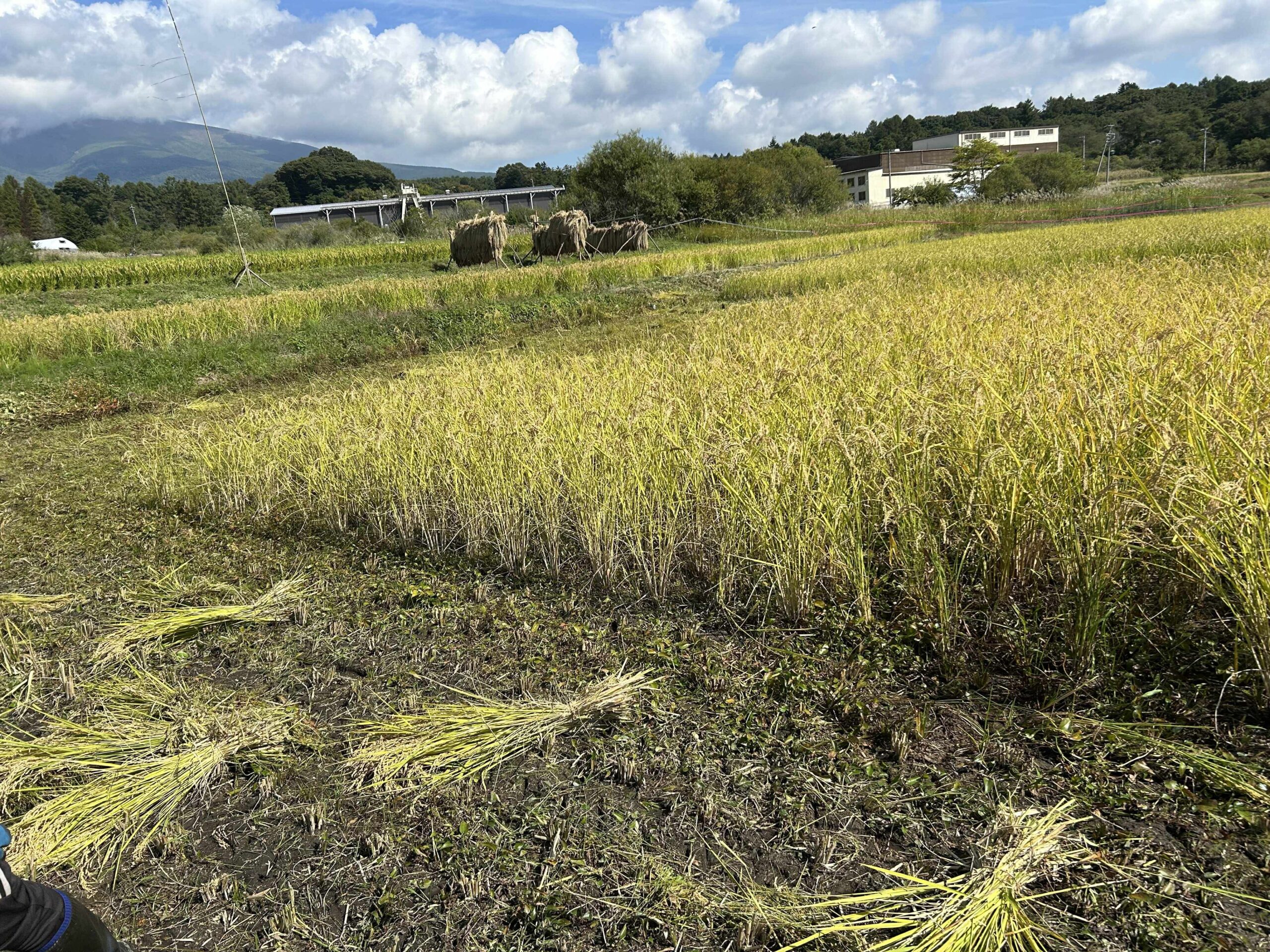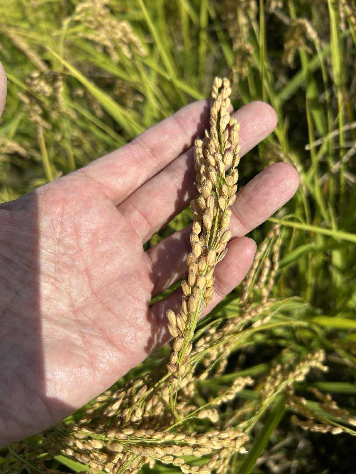 今年は異常な暑さだったせいか、オモダカ、コナギが大量発生し、毎朝田んぼに入って手で草を引き抜く作業を二週間ほど続けたが、一部草に飲まれて成育が悪いところが残ってしまったのだという。